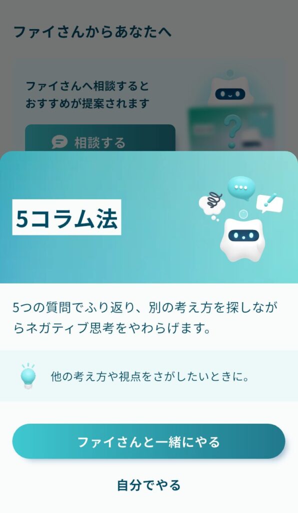 さらにAIパートナープランだと、AIとカウンセリング形式で5コラム法ができるよ!