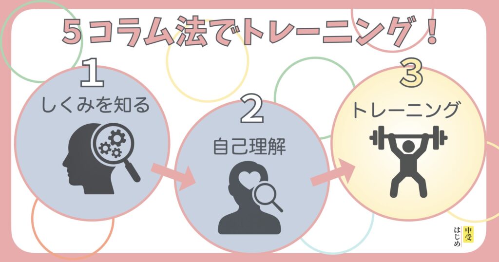 「自己理解」で考え方のクセを把握して、「トレーニング」で少しずつ考え方と行動を変えていきます。